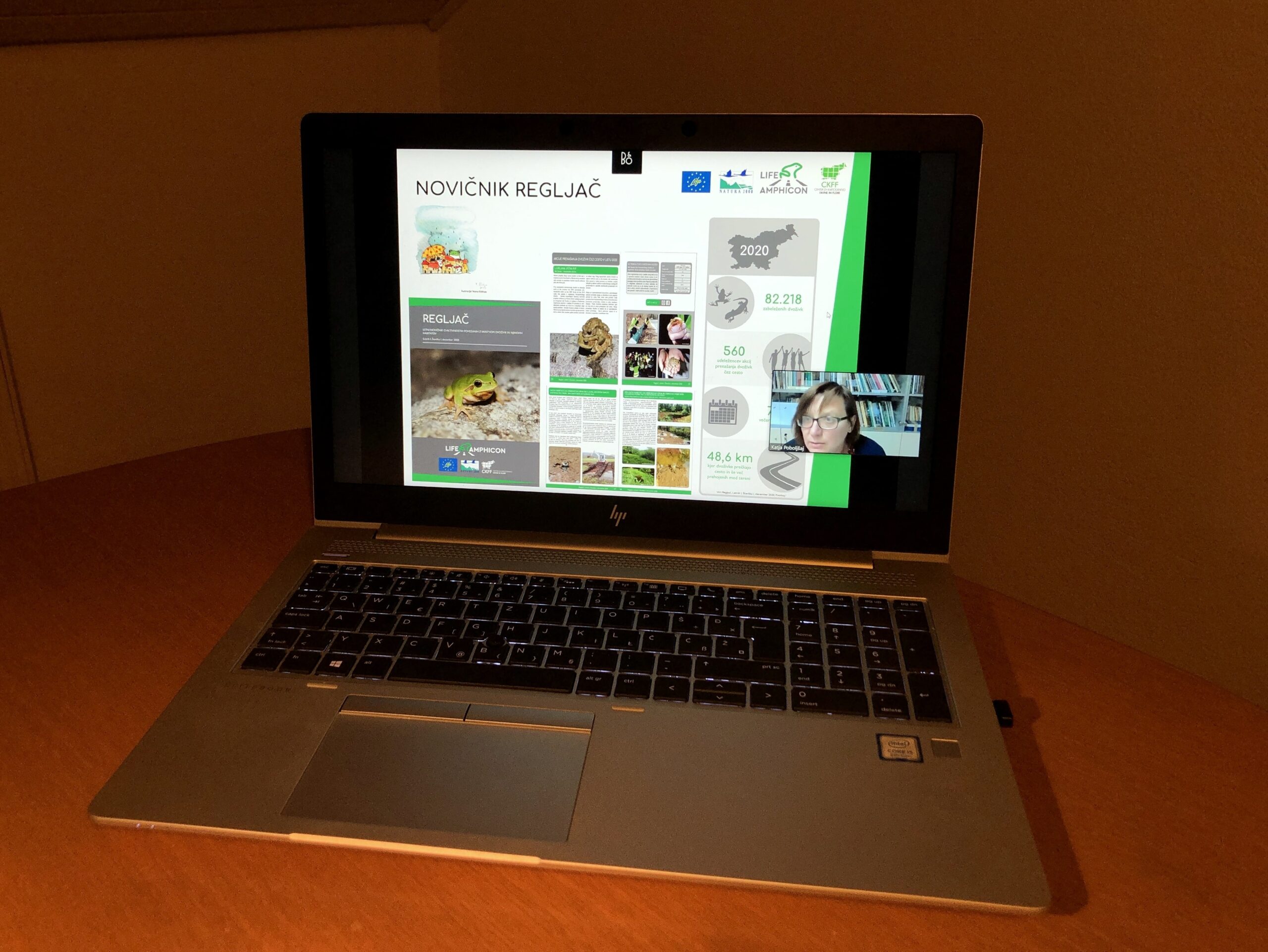 On Wednesday, 10th November 2021 we held an online lecture which was attended by 20 members of the SHS. We presented the LIFE AMPHICON project – AMPHIbian CONservation and Habitat Restoration focusing on the project achievements realised activities and the planned activities regarding amphibians and roads. SHS also contributed an important part to the conservation of amphibians in the area of the Ljubljansko barje, where they implemented several actions for saving amphibians on roads in the past. Project road sections in Bistra, Pako and Podkraj were also among them and the results represented important input data for the preparation of the project application. These are also the areas where we carried out intensive night road surveys in the LIFE AMPHICON project in 2020 and where the amphibian mitigation measures are planned. We presented the results of the amphibian monitoring carried out in 2020 and 2021 on project road sections in the Ljubljansko barje and Radensko polje.