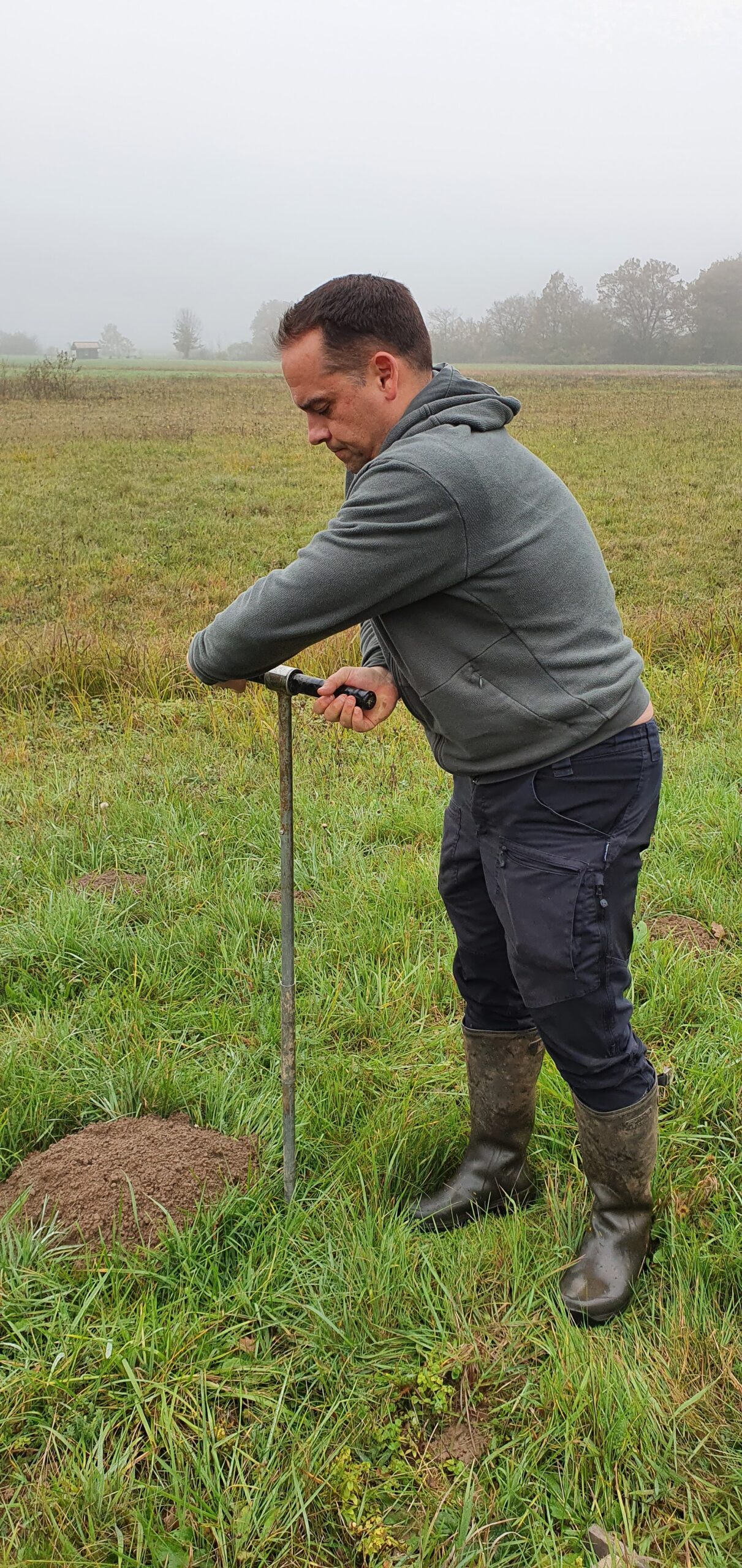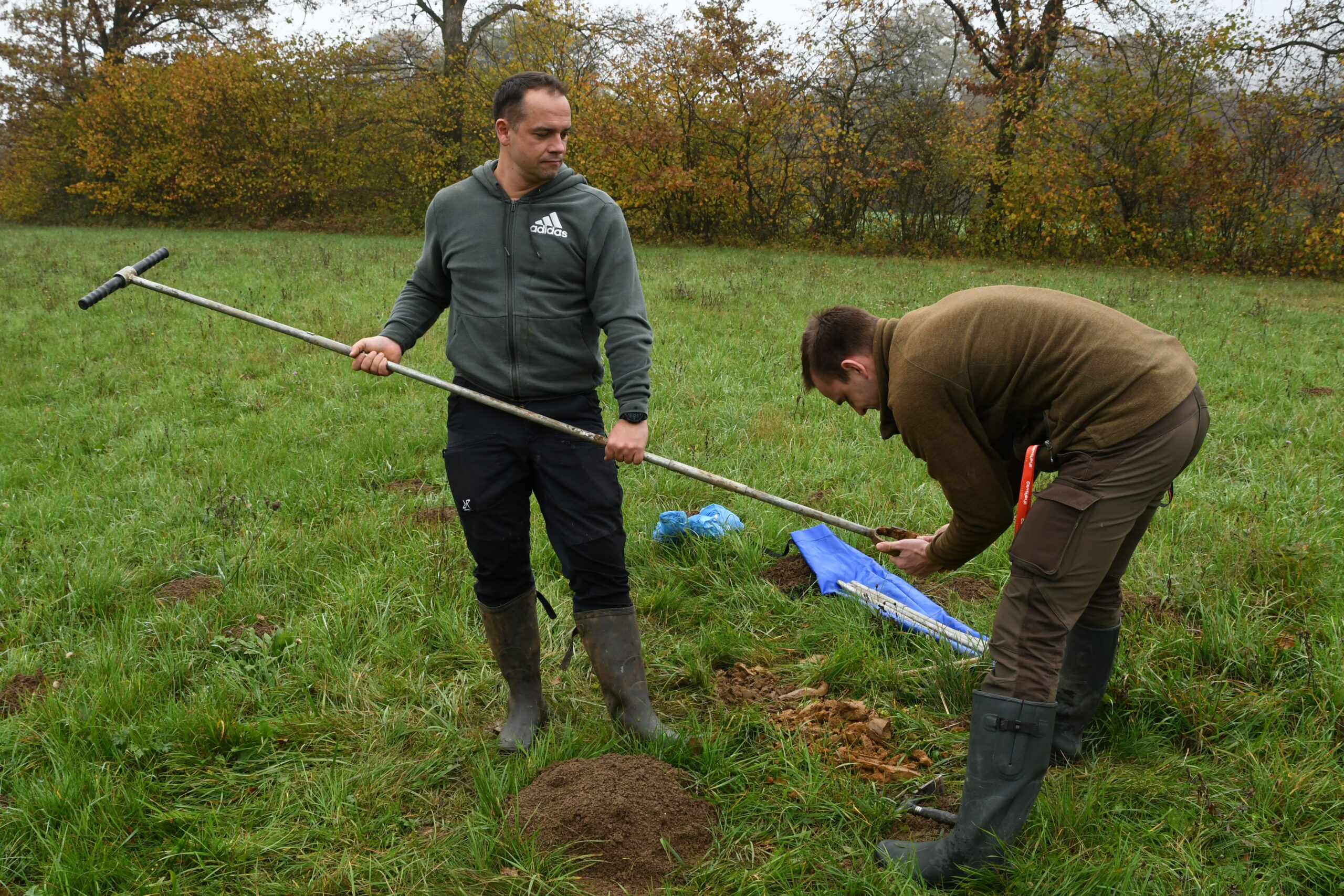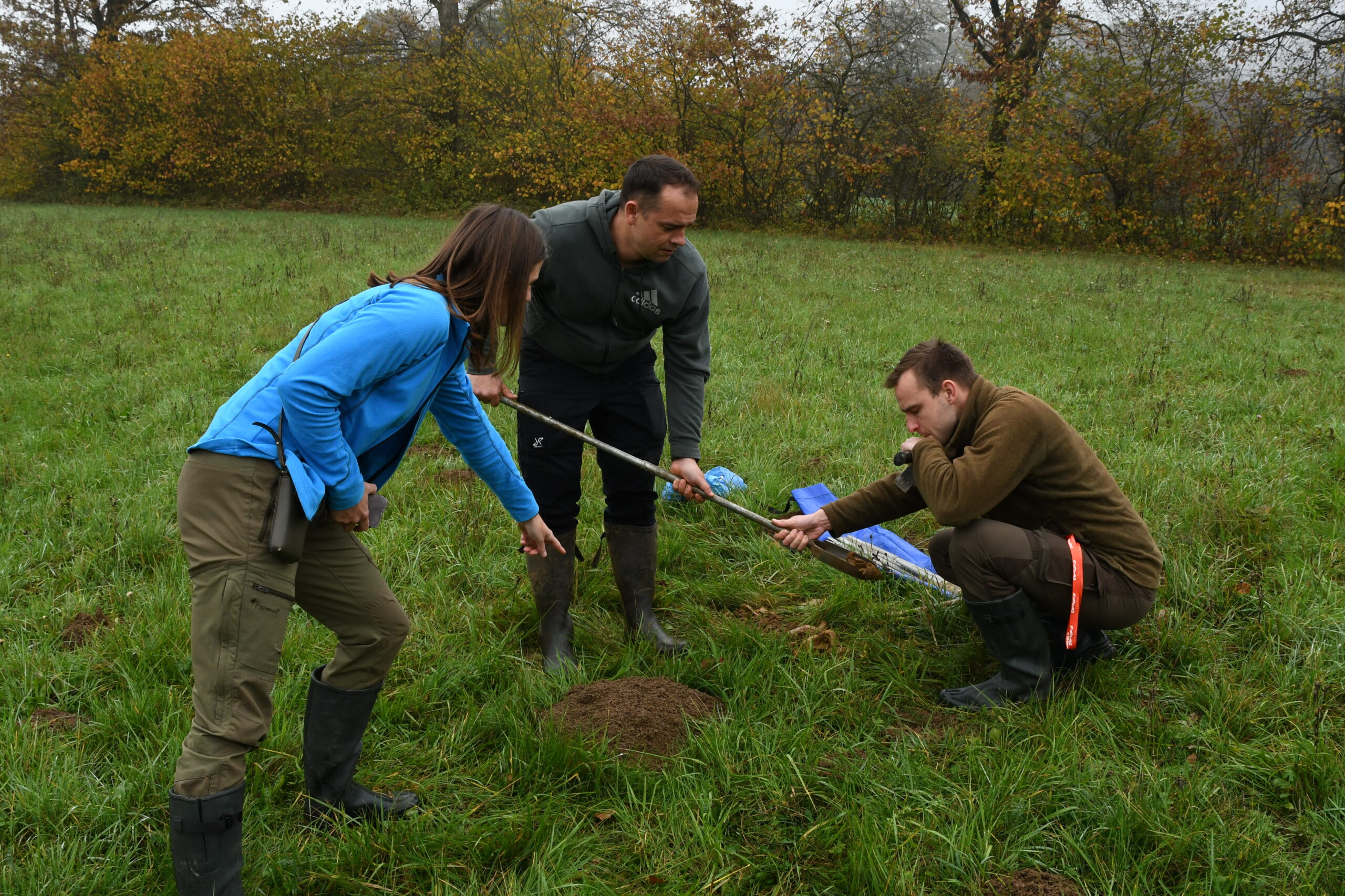 This winter, we will create 40 new water habitats for amphibians on Radensko polje. Before preparing the documentation for digging the ponds, we checked the suitability of the field. With the help of prof. dr. Uroš Stepišnik we made boreholes up to 2 meters deep and checked the thickness and granulometry of the alluvial clay deposits.