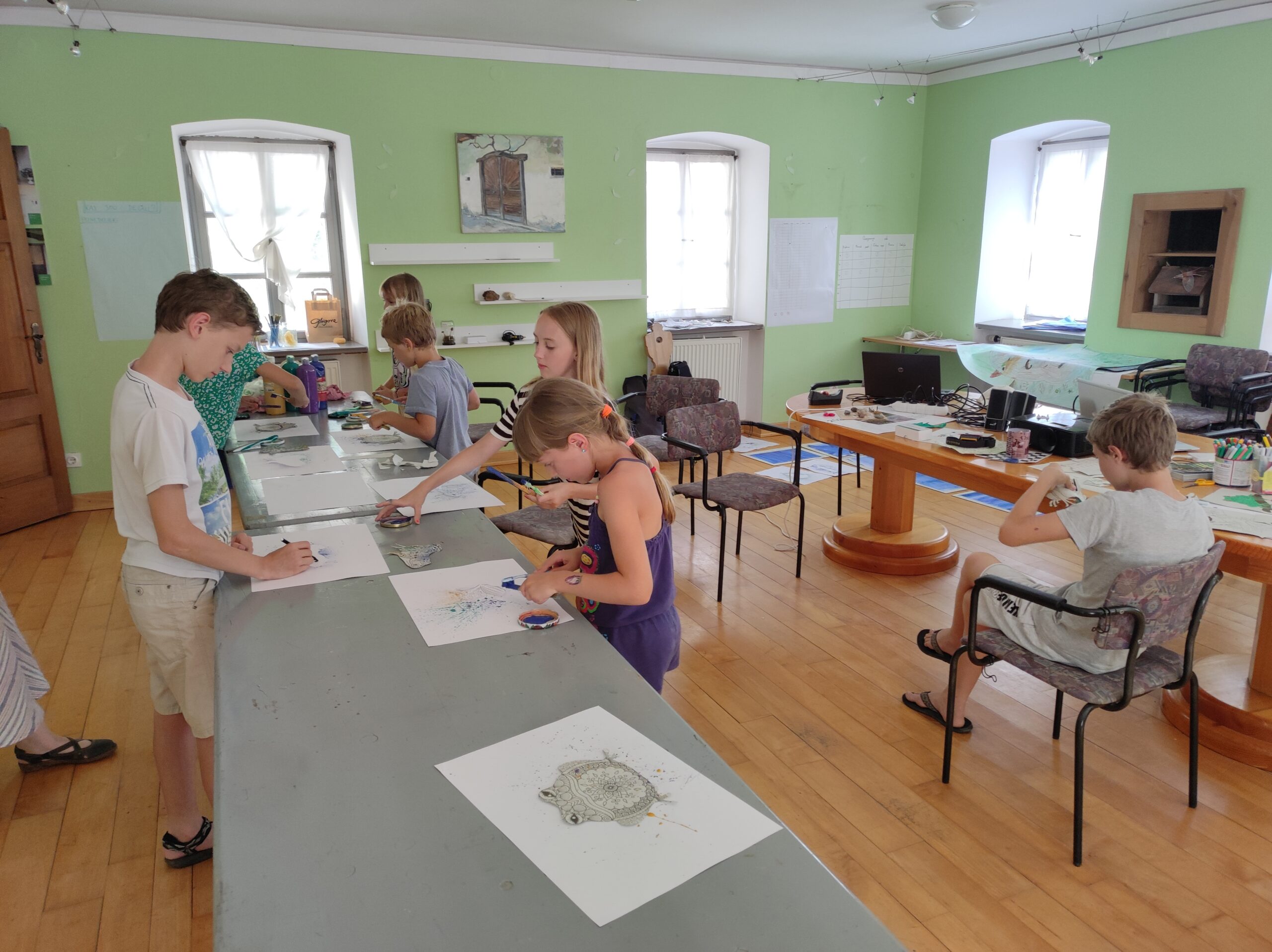 In total, more than a hundred children from the area of Kozjanski Park and other parts of Slovenia were included in the summer camps. The children discovered the world of amphibians in different stages of their lives. Since it was summer, they were able to see the Smooth newt (Lissotriton vulgaris), the Alpine newt (Ichthyosaura alpestris), the Italian crested newt (Triturus carnifex), green frogs, newly metamorphosed brown frogs, the European tree frog (Hyla arborea) – adult one and its spawn, the Yellow-bellied toad (Bombina variegata) and its spawn. They had the opportunity to hold the amphibian in their hands and see how fieldwork is done. In the midday heat, they drew amphibians, made them out of clay, and made board games…A lot was going on.