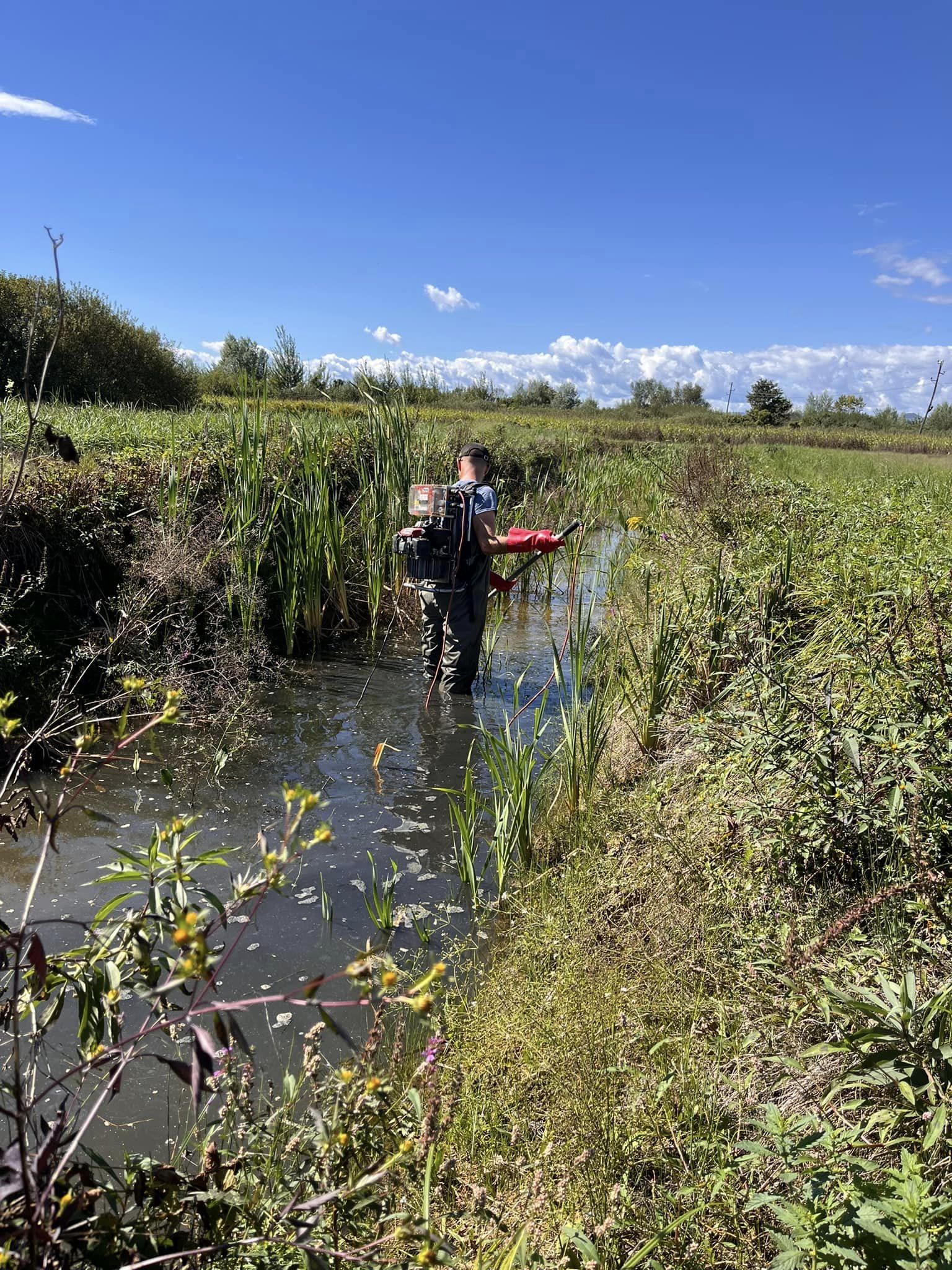 Invasive species like the pumpkinseed sunfish are particularly harmful because they outcompete native species and threaten biodiversity. In September, after confirming the presence of this invasive species in some of our ponds, electrofishing was conducted to remove them from the ponds.