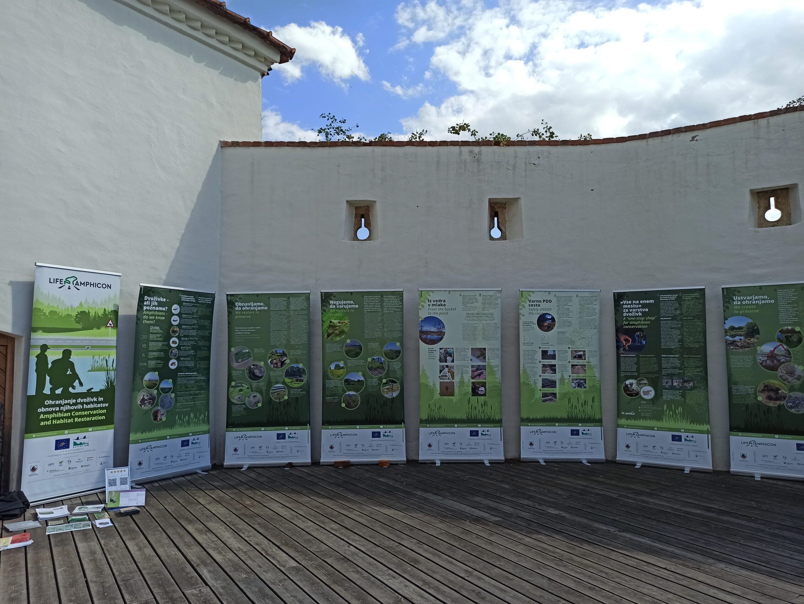 The event took place outdoors on the castle stage, where we set up the mobile exhibition Sedem mrestov. During the presentation of our activities, the participants were especially interested in how amphibian underpasses are constructed and how the supportive breeding of the Italian crested newt was carried out in Kozjansko Park. They expressed a desire to have similar amphibian underpasses and permanent solutions at their location, on the road section between two ponds near Vurberk Castle.