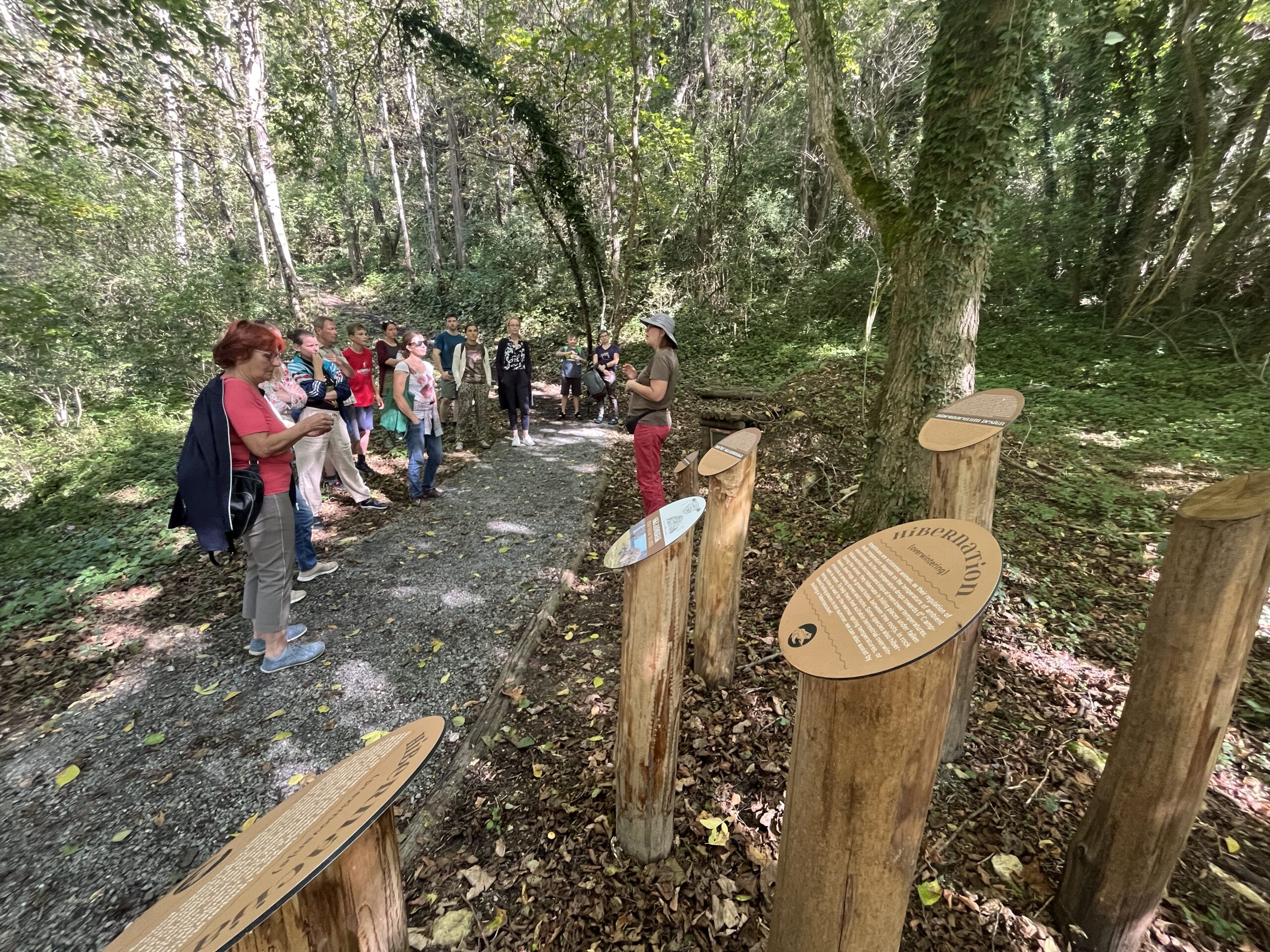 At Žabja domačija, Katja Poboljšaj (CKFF) and Anja Bolčina (Kozjanski Park) led the introductory part, showcasing several good practices developed within the LIFE AMPHICON project, including an educational amphibian exhibition, the creation of a fish-free pond zone, and new amphibian underpasses on a regional road, which are already successfully fulfilling their purpose.