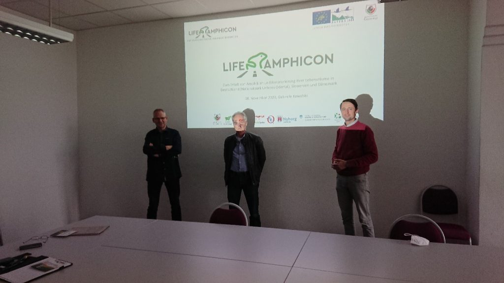 Am 18.11.2020 war der Verein der Freunde des Deutsch-Polnischen Europa-Nationalparks (VUO), vertreten durch den Geschäftsführer Thomas Michael und Dr. Gabriele Kowalski, zu Besuch in der Kreisverwaltung Uckermark, um das Projekt LIFE AMPHICON vorzustellen. Herr Stornowski, 3. Beisitzer, und Herr Schubert, Amtsleiter vom Landwirtschafts- und Umweltamt, vom Dezernat für Bauen, Landwirtschaft und Umwelt haben sich sehr für das Projekt und die Ziele interessiert. Herr Stornowski fand auch einen persönlichen Bezug zum Projektstandort, das Felchowseegebiet, da er viele Jahre in der Nähe gelebt und die Rotbauchunken selbst von Zuhause aus gehört hat.