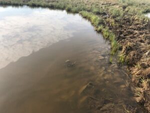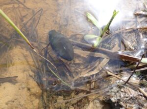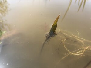 In allen drei Teichen konnten wir bereits in der ersten Saison viele Tiere beobachten. Die Pflanzen wachsen allmählich entlang der Teiche und bilden geeignete Lebensbedingungen für die Teichbewohner. Im Frühjahr legten die Frösche als erste ihre Eier ab. Gegen Ende April lauschten wir den Chören unserer lautesten Amphibie – dem Laubfrosch. Schon bald fanden wir Eier und Kaulquappen des Laubfrosches sowie erwachsene Teichmolche und ihre Larven. Anfang Juni wurde es sehr spannend, als die ersten Larven der italienischen Kammmolche erkennbar wurden. Die Weibchen der italienischen Kammmolche wickeln ihre Eier normalerweise in die Blätter schwimmender oder untergetauchter Wasserpflanzen ein. Da es in einem der Teiche zu dieser Zeit keine geeignete Vegetation gab, wickelten sie ihre Eier in Weidenblätter ein, die von den umstehenden Bäumen in den Teich gefallen waren. Gegen Ende Juli haben sich die Larven der Kammmolche schließlich metamorphisiert und das Gewässer verlassen. Wir sind sehr begeistert, dass dies alles bereits in der ersten Saison der neu geschaffenen Wasserlebensräume geschehen ist.