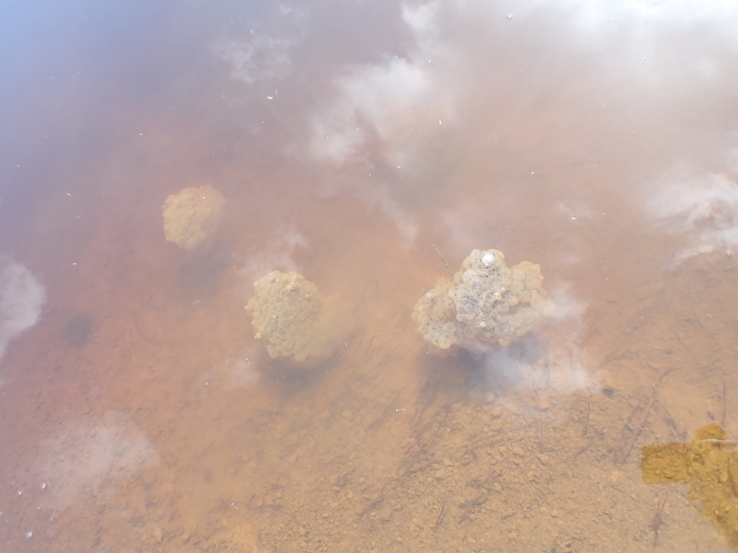 Zu Beginn des Frühlings untersuchen wir alle neu angelegten Wasserlebensräume, um zu sehen, ob Braunfrösche dort Laich abgelegt haben. Diese Frösche gelten oft als Frühlingsboten, da sie zu den ersten Tieren gehören, die aus der Winterruhe erwachen.